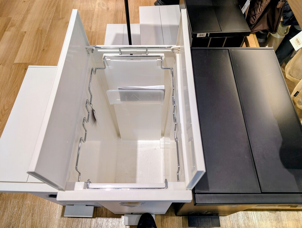 両開きダストボックスは、フタが上部の中央から開くタイプ。
