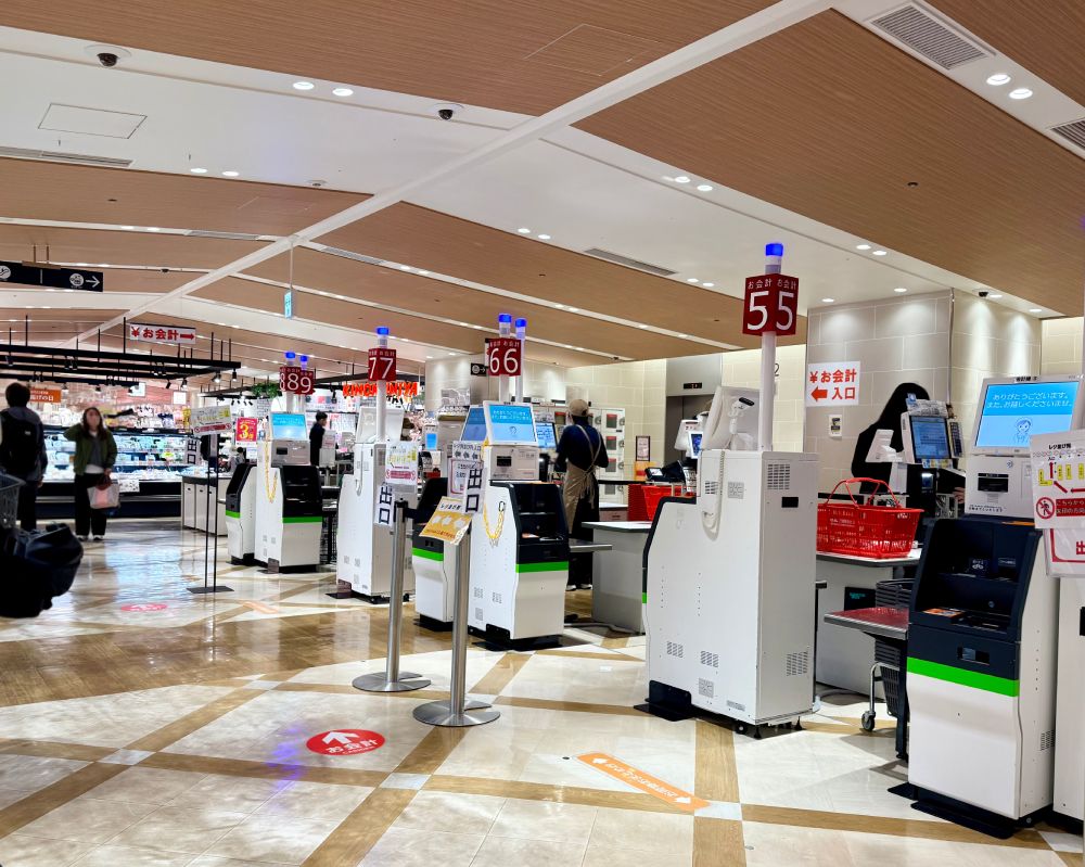 こちらでは一列に並び、9台ほどのレジのうち、空いたところへ順番に案内される仕組みになっていました。