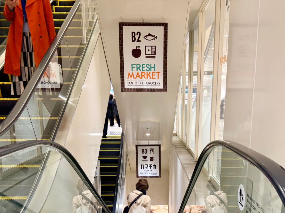 まっすぐ進むと右手に連絡通路の階段があるので、そちらへ上り、NEWoManに入って地下2階へ向かいます。